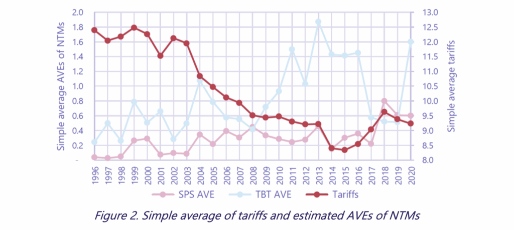 In terms of trade and investment policy, bilateral policy measures have had important impacts on trade with a limited number of trading partners, mostly those in the EU neighbourhood. Unilateral policy measures such as trade defense tools and preferential access schemes have also had a decisive impact on EU-oriented GVCs. In addition, the team’s research indicates both that non-tariff measures (NTMs) are increasing (Figure 2) and that they pose greater challenges to MNEs’ subsidiaries’ activity and performance than tariffs do, especially in high-tech sectors. However, certain characteristics - like high productivity, foreign ownership and being embedded in international networks - as well as the presence of deep preferential trade agreements, can turn these trade challenges into advantages.